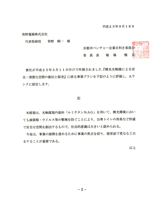 事業の幅を広げるために、本業の電線事業と並行して研究開発を始めたのが光触媒です。